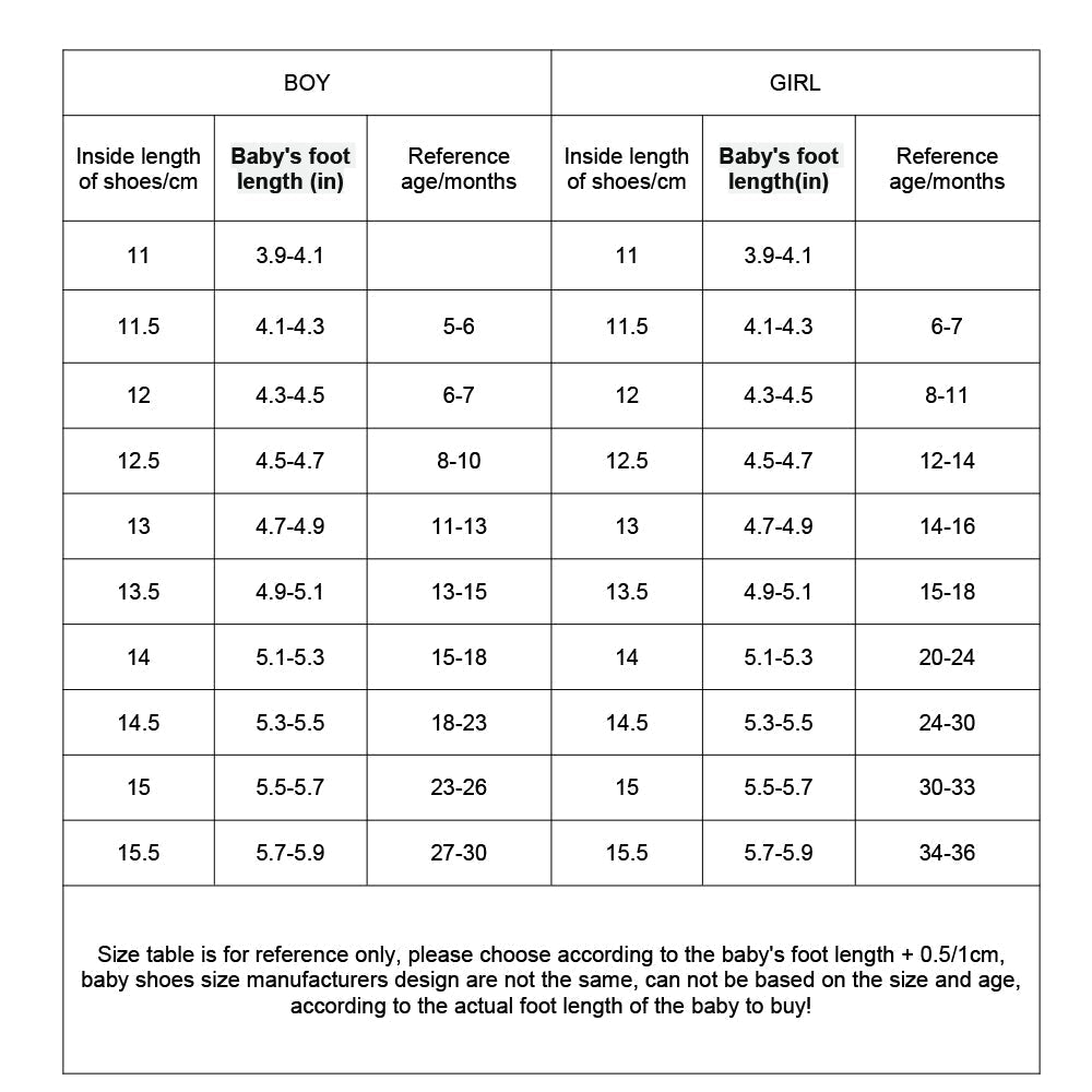 5. Size. There are 9 sizes of these baby walking shoes, suitable for babies up to 36 months. The colors are bright white, cute pink, and calm black. When choosing a size, mothers must read the tips of the size chart , choose the size that best suits your baby.