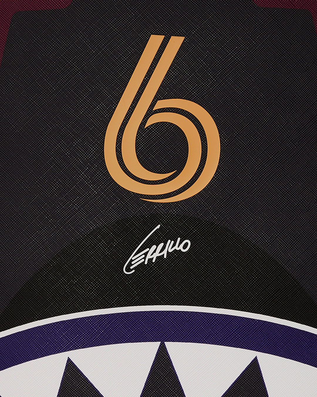 Dimensions: 18" x 6" x 11.5" • Front zipper pocket • Side pockets • Zippered Stash pocket • Separate velour sunglass compartment • Ergonomic mesh back padding • Adjustable Straps for custom sizing • Gold zippers with metal hardware • Metal "Sprayground Authentic" badge • Slide through back sleeve connects to carry-on luggage to free your hands