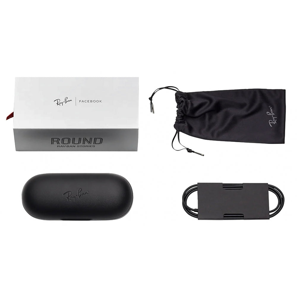 Ray-Ban Stories Round Smart Glasses (Glossy Black with G-15 Dark Green Lenses)