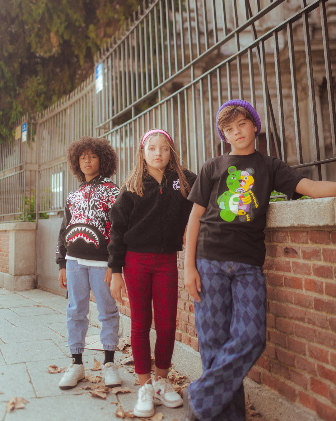 FRONT MULTICOLOR ANATOMY BEAR GRAPHIC PRINT; FRONT SHARKMOUTH PATCH |